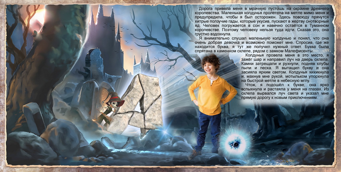 Cюжет нашей фотокниги позволяет представить сказочное повествование в виде «конструктора».