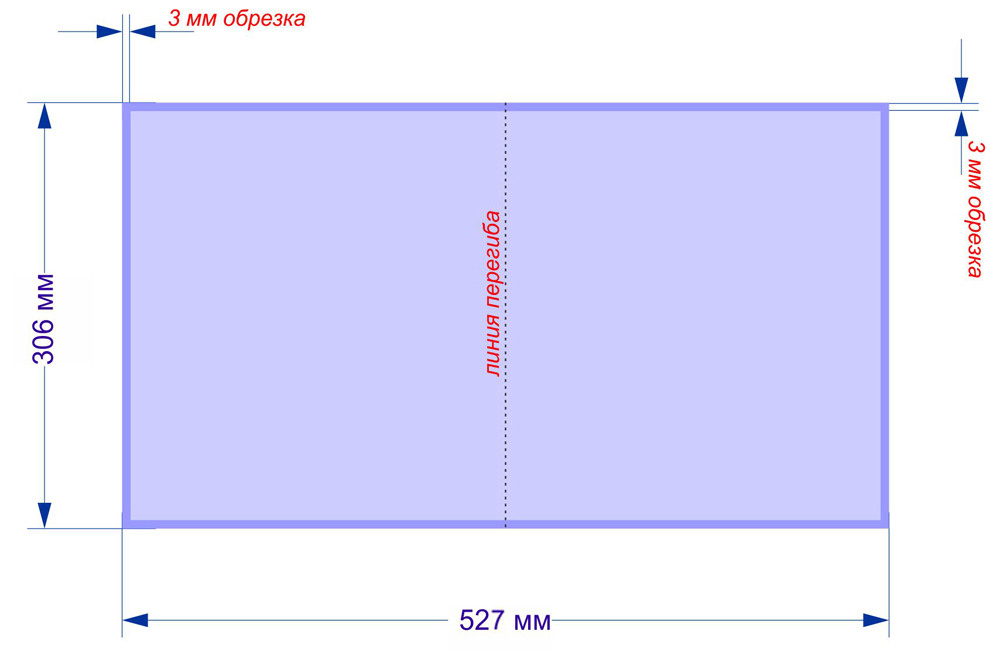 На разворотах под обрезку уходит по 2-4 мм с каждой стороны. Линия сгиба не должна проходить по лицу или другим значимым элементам изображения.