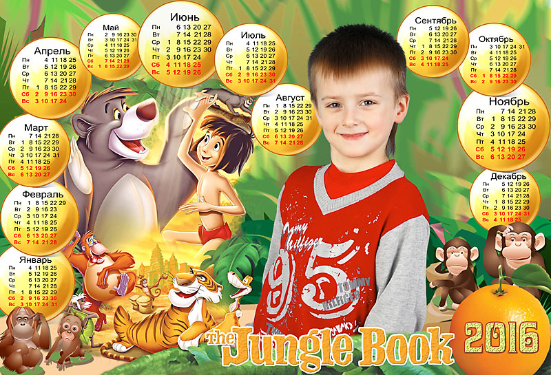 Предоставьте ребенку такую возможность с дизайном календаря Книга джунглей.
